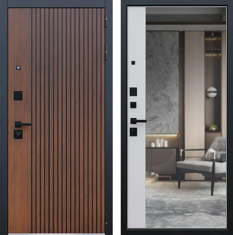 - Входная металлическая дверь с зеркалом Дуб кантри темный/Капучино - 1025