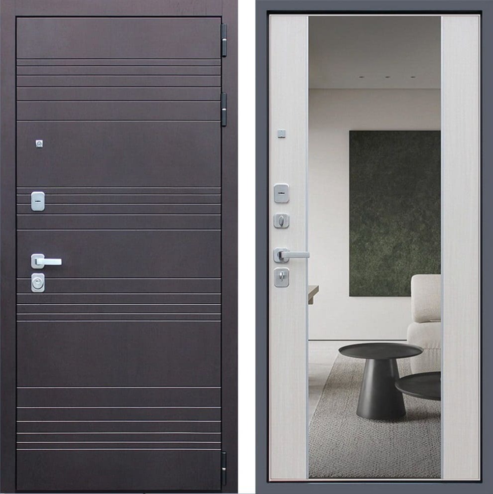 - Входная металлическая дверь с большим зеркалом с защитой от шума и запахов - 1051