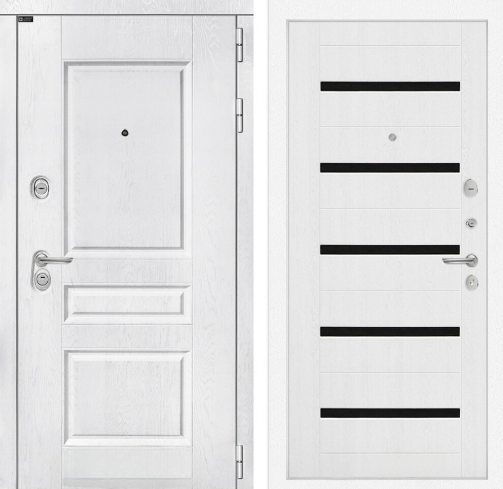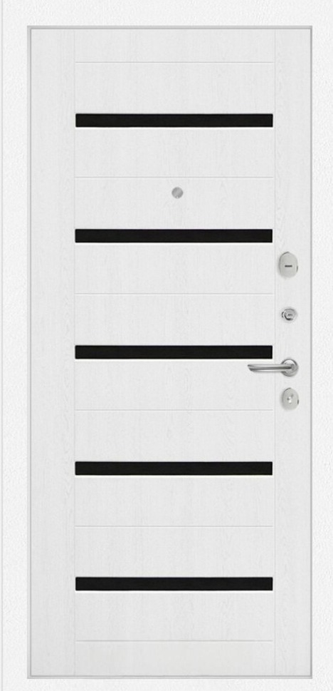- Входная металлическая дверь с шумоизоляцией для квартиры, белое дерево со стеклянными чёрными вставками - 1106