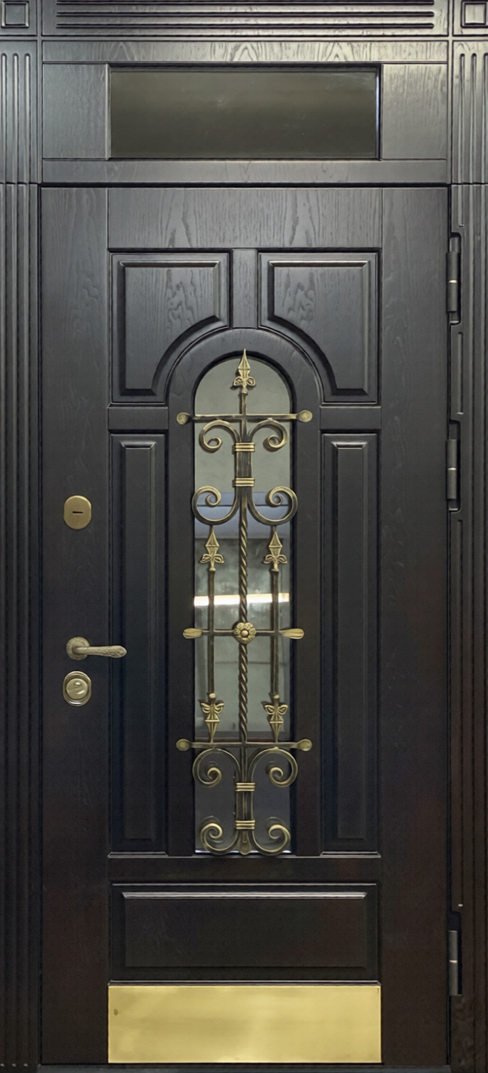 - Входная металлическая дверь с фрамугой и стеклопакетом - 1256